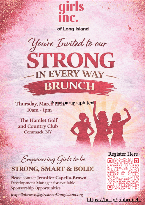 Events Categories events Strong All Around Brunch Share on Facebook Share on X formally Twitter Share on LinkedIn Susan Dunbar January 23, 2026 Women’s History Month Strong All Around Brunch Join inspiring panelists for a powerful conversation on financial, physical, and emotional wellness. Let’s show our girls what it looks like to show up together and uplift the next generation. Get Tickets Share on Facebook Share on X formally Twitter Share on LinkedIn